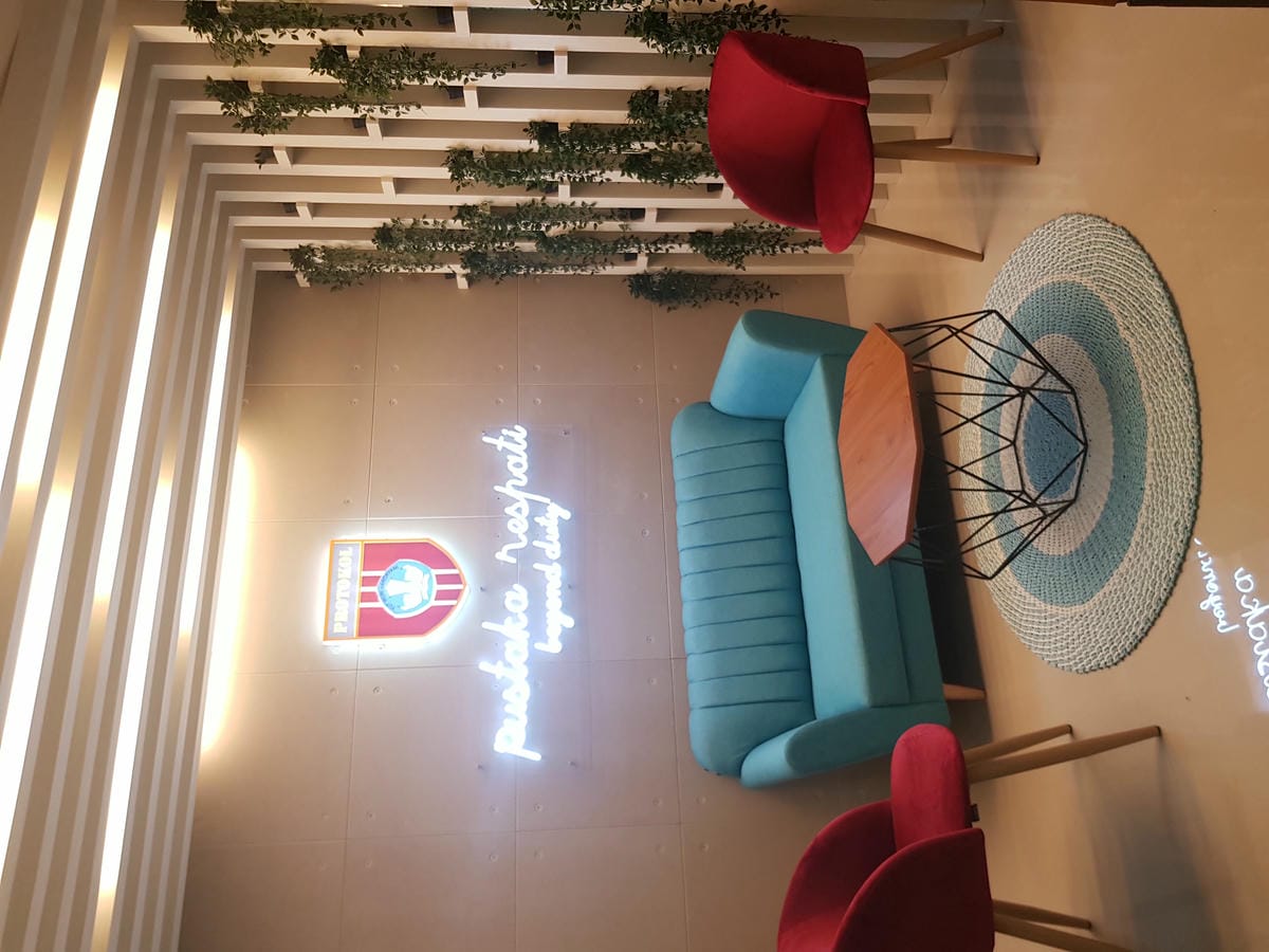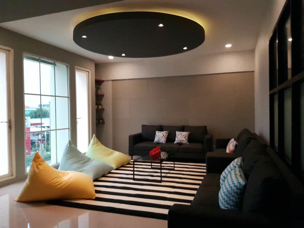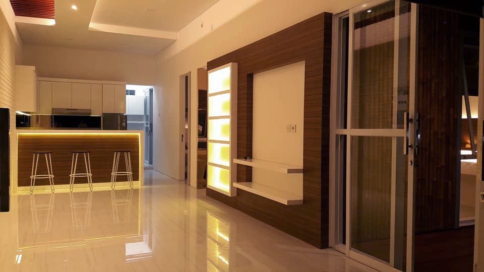 Penambahan elemen dekoratif seperti panel kayu, lampu LED modern, serta furnitur custom membuat ruangan terlihat lebih menarik dan fungsional.
