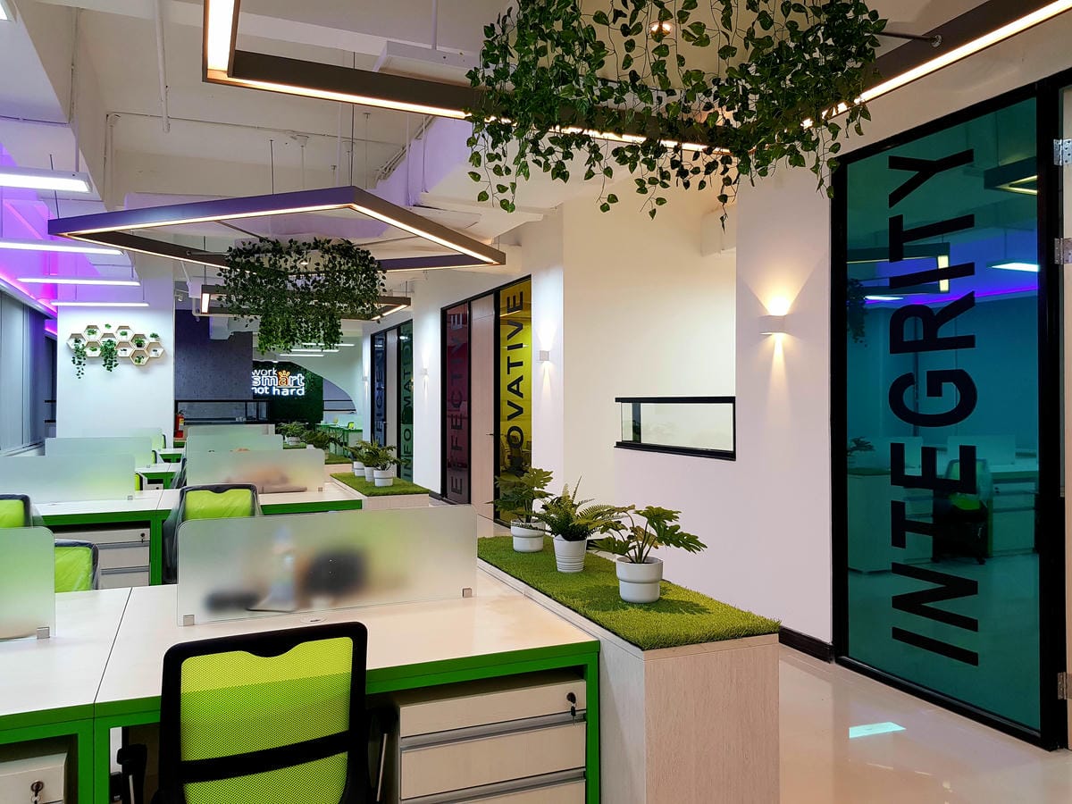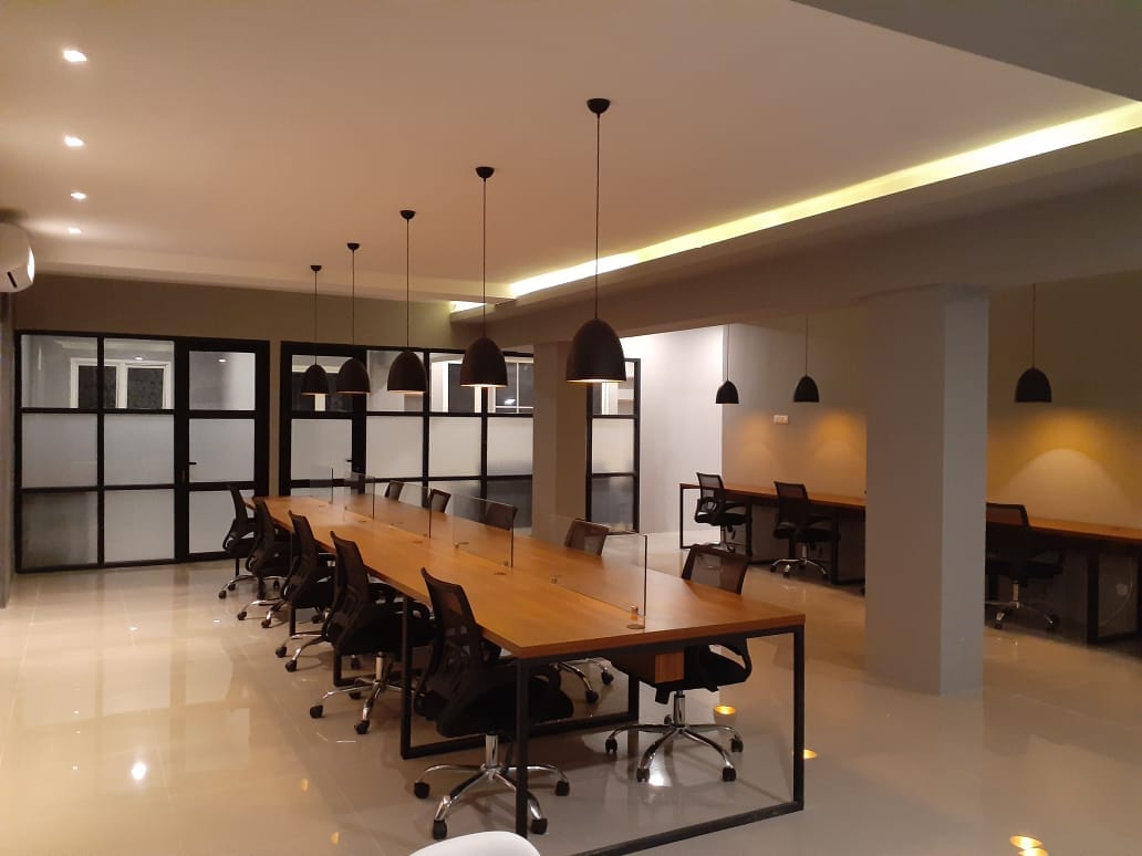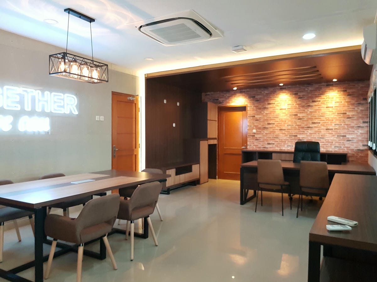 Ruangan dibagi menjadi beberapa zona dengan fungsi yang berbeda, seperti area kerja, area diskusi, dan area santai. Pemisahan ini memastikan penggunaan ruang yang lebih efisien.